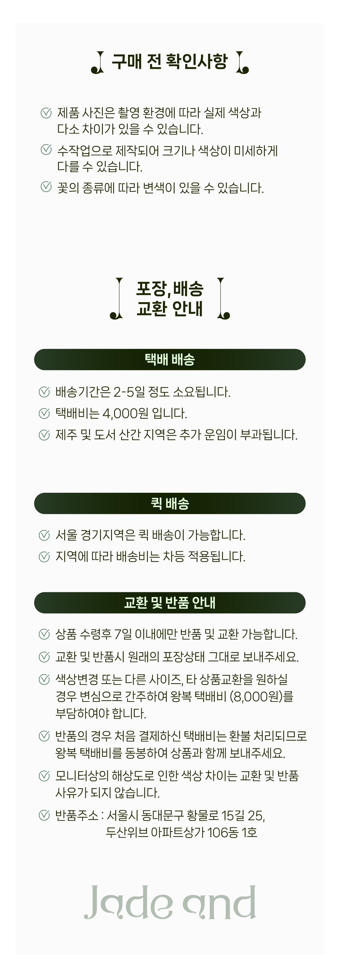 - 모든 배송은 택배사 사정으로 지연될 수 있습니다.