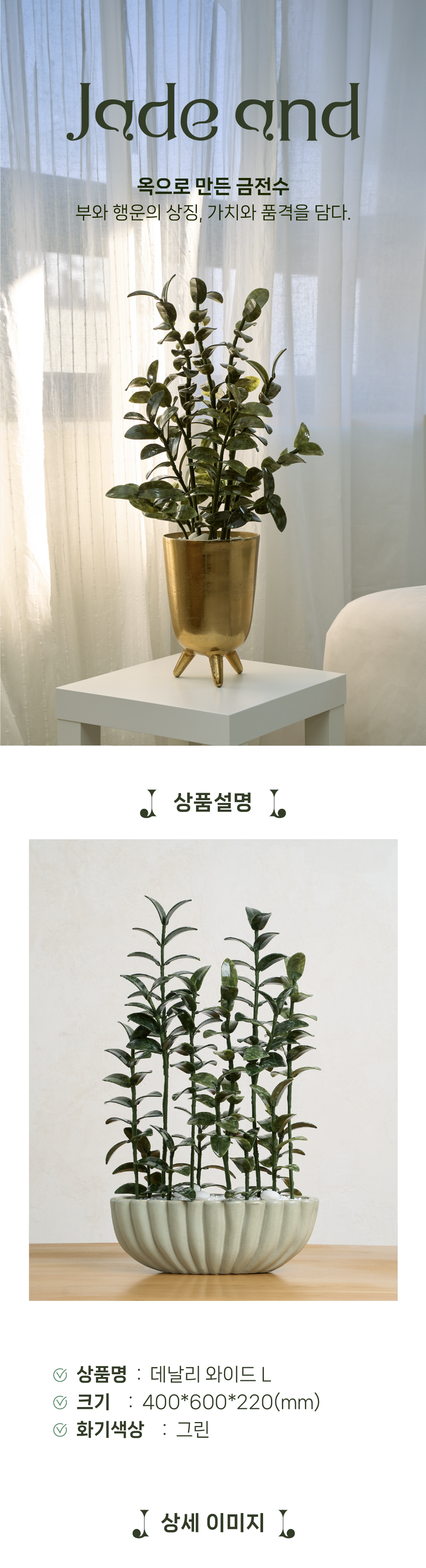 옥 금전수, 데날리는 우리가 자연과 하나가 되어 이루는 힘찬 도전의 결과물입니다. 그 자체로도 아름다움과 강인함을 상징하며, 새롭게 시작하는 분들에게 자연의 아름다움과 성공을 동시에 안겨주는 행운의 옥금전수입니다.