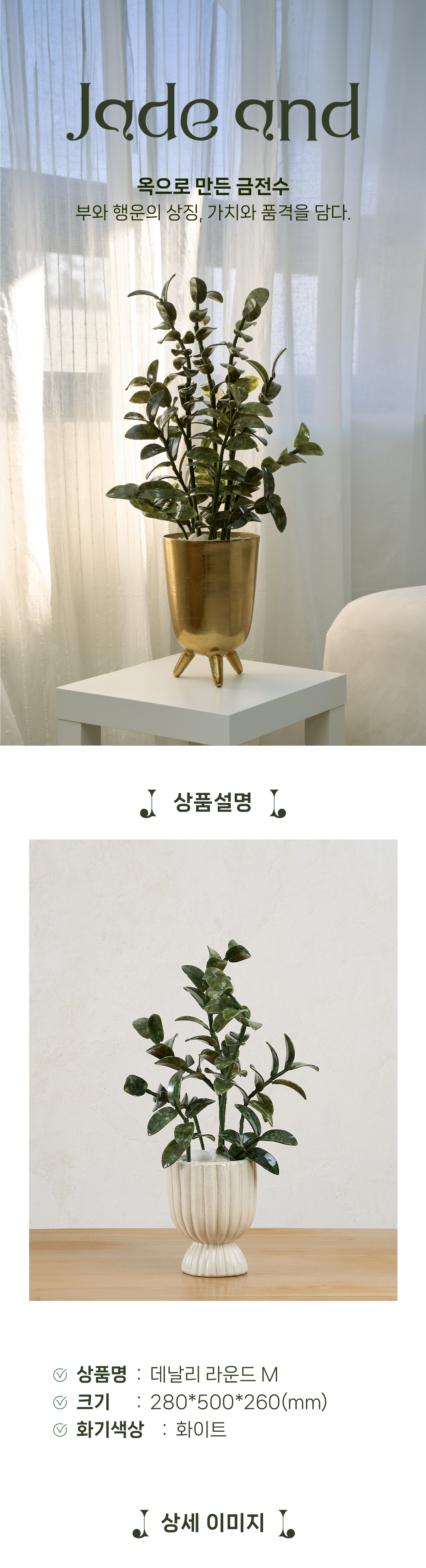 옥 금전수, 데날리는 우리가 자연과 하나가 되어 이루는 힘찬 도전의 결과물입니다. 그 자체로도 아름다움과 강인함을 상징하며, 새롭게 시작하는 분들에게 자연의 아름다움과 성공을 동시에 안겨주는 행운의 옥금전수입니다.