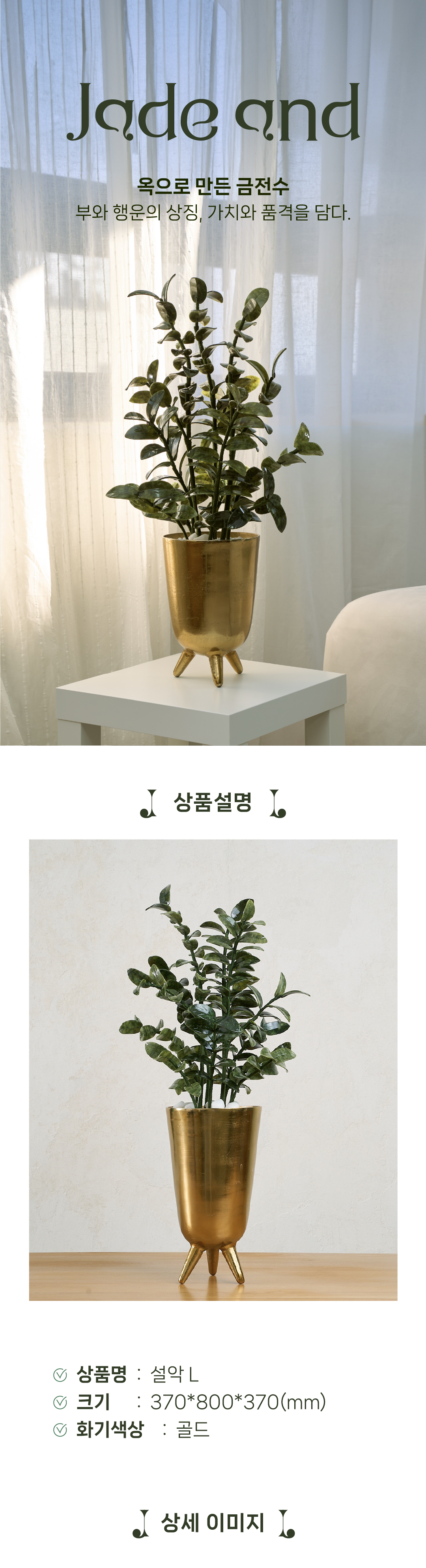 옥금전수 ‘설악’은 자연의 아름다움과 성공을 향한 도전정신을 동시에 상징하는 존재로, 귀하의 공간에서 특별한 가치를 더해줄 것입니다. 매일 함께하는 이 식물은 우리의 삶을 풍요롭게 하고, 자연과의 연결을 통해 더 큰 성취를 이루는 길로 나아가게 하는 소중한 동반자가 될 것입니다.