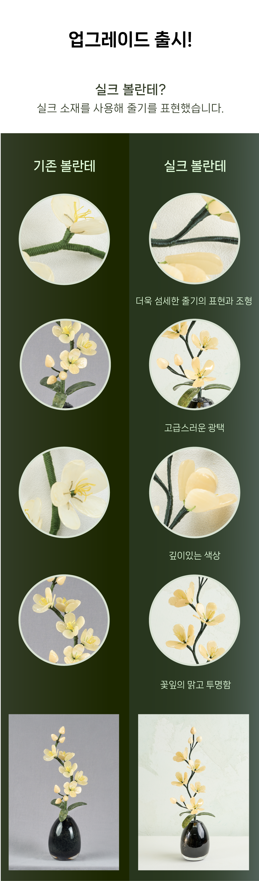 '가볍고 빠르게 비상하다'는 의미의 '볼란테(Volante)'처럼, 실크 볼란테 난은 힘찬 기세와 밝은 에너지를 담고 있습니다. 예로부터 고결함과 강인한 생명력의 상징인 난의 의미가 더해져, 받는 분의 성공과 새로운 시작을 응원하는 최고의 선물이 됩니다.