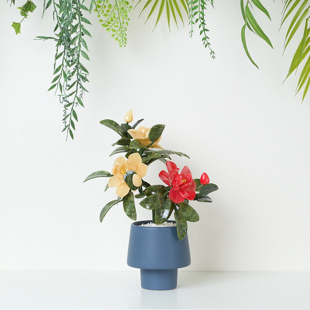 '노블레'라는 이름에서 느껴지듯, 이 작품은 귀족적이고 고결한 자태를 뽐냅니다. 푸른빛이 은은하게 감도는 도기와 만나 그 위풍당당함을 더욱 돋보이게 합니다.
